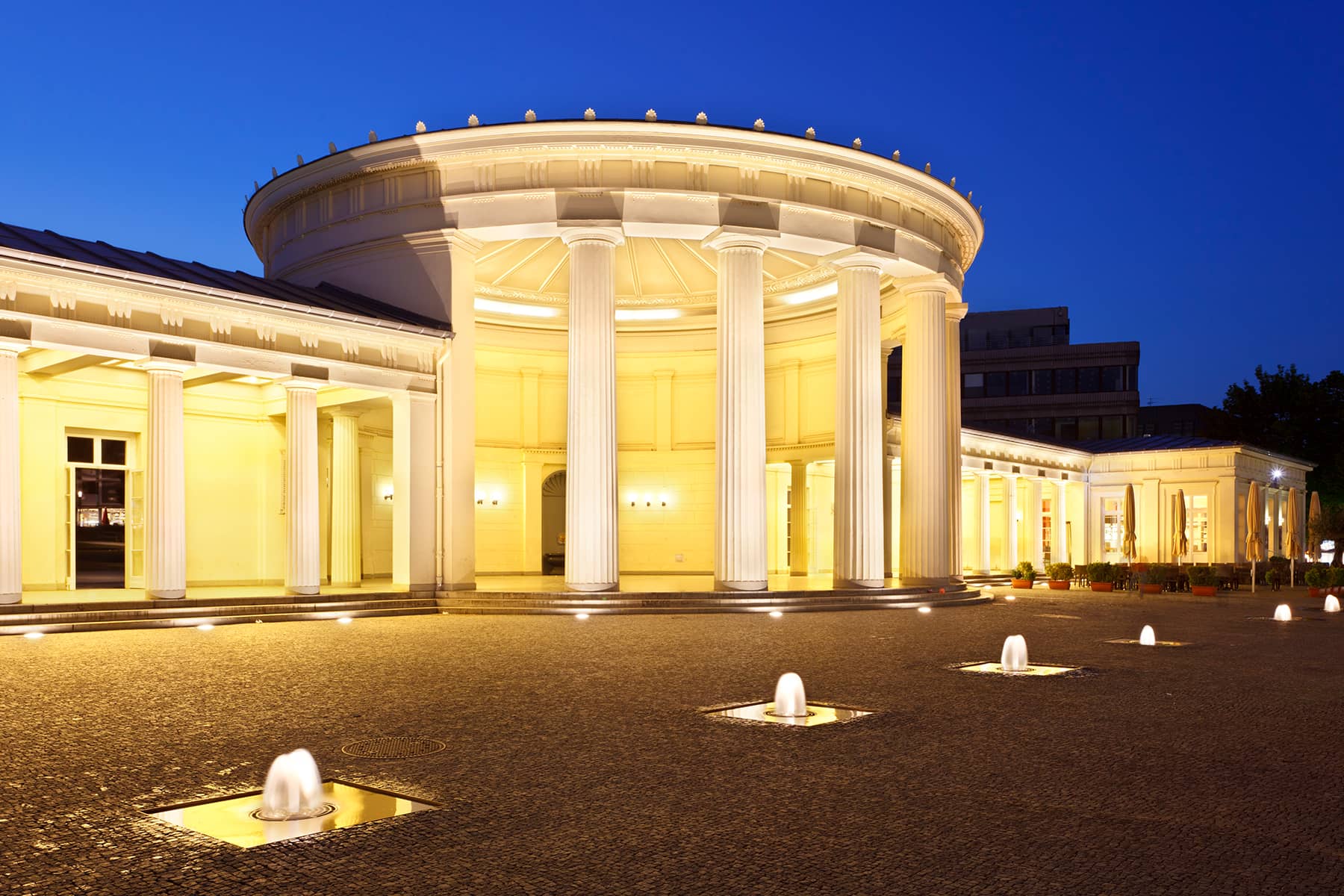 Eine weitere Besonderheit Aachens sind die Thermalquellen, die bereits von den Römern genutzt und wertgeschätzt wurden. Die Quellen können auch heute noch an einigen Stellen in Aachen gesichtet werden. So zum Beispiel auch im Elisenbrunnen, unterhalb von Rathaus und Dom, in dessen imposanter Kuppel die 53 Grad heißen Quellen sichtbar zu Tage treten. Der 1827 gebaute Elisenbrunnen gilt mit seinen dahinterliegenden Treppen zu einem beliebten Treffpunkt für Jung und Alt und bietet sich als ausgezeichneter Ort für eine Pause mit Kaffee oder Eis an.
