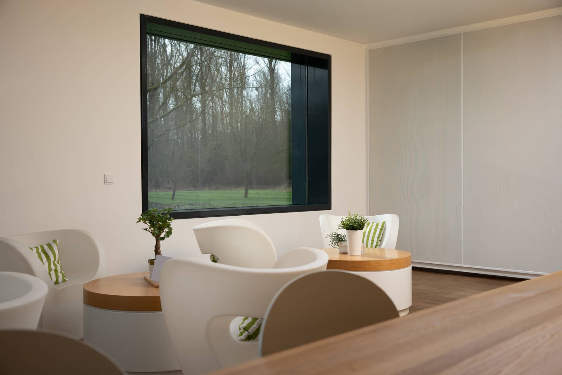 Die Zimmer verfügen über ein eigenes Bad und einen großartigen Ausblick ins Grüne. Ein großer Aufenthaltsraum inkl. voll ausgestatteter Küche (Backofen und Kochfeld ebenfalls vorhanden) machen Sie unabhängig von festen Essenszeiten. Bei gutem Wetter kann ebenfalls der Garten inkl. Terrasse genutzt werden.